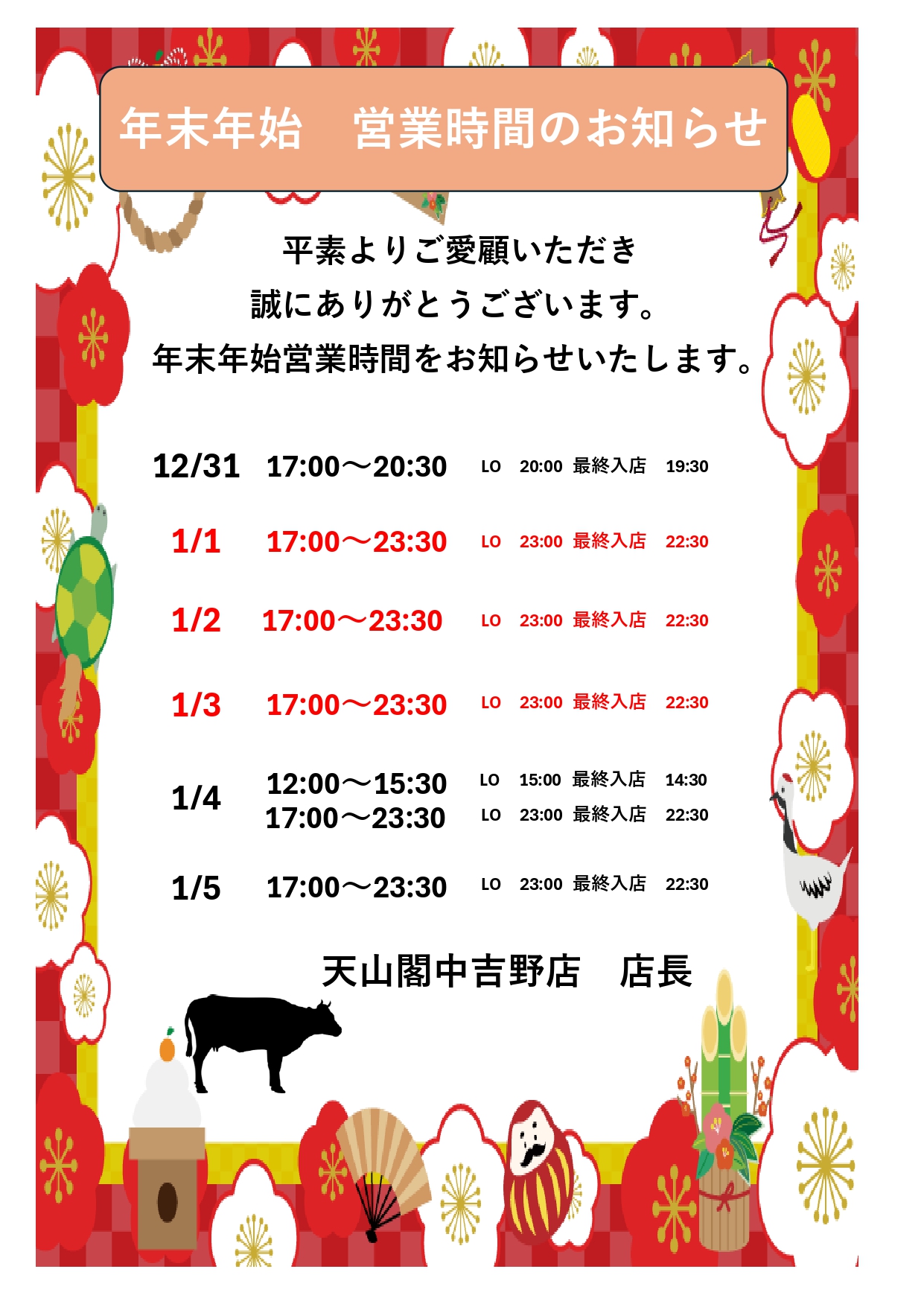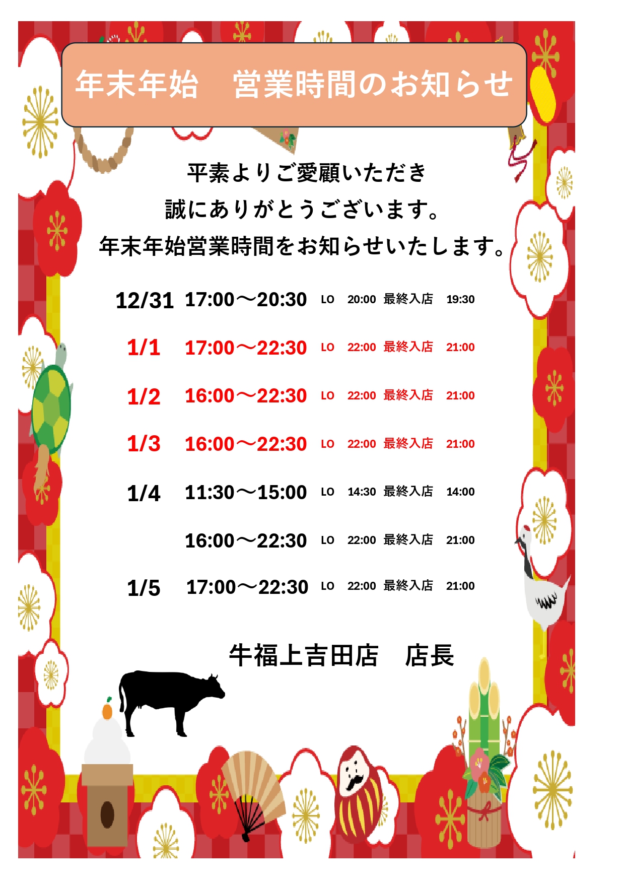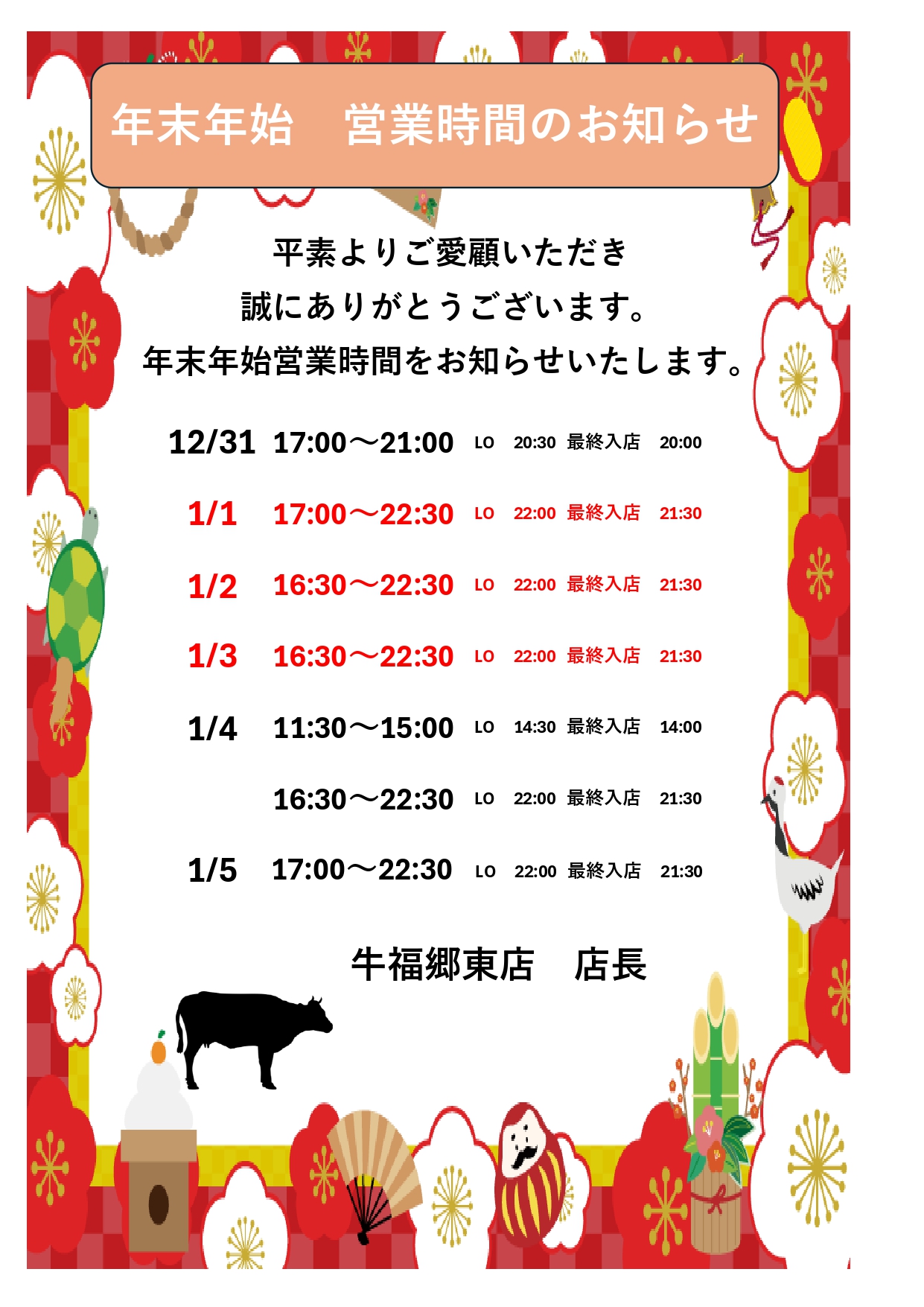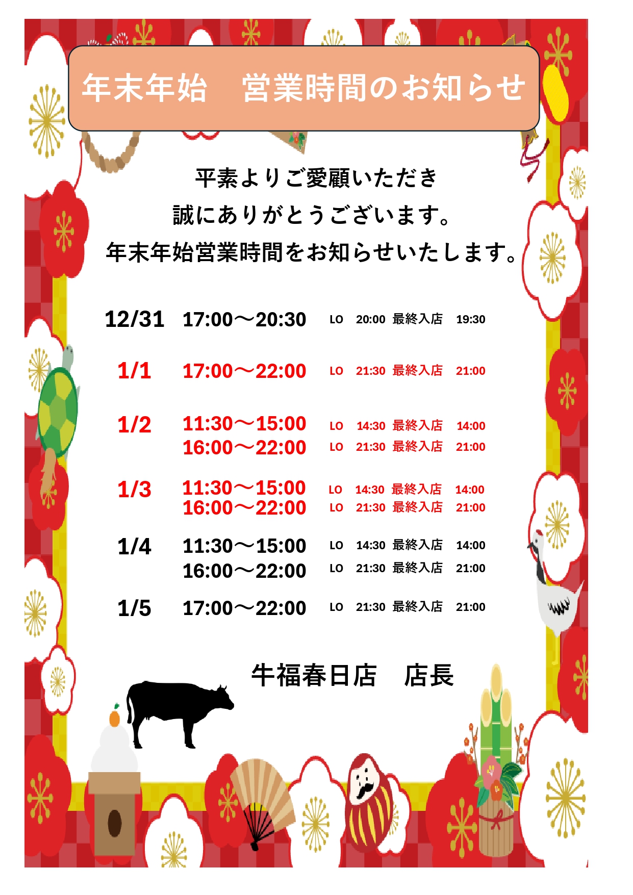 年末年始の休業日について