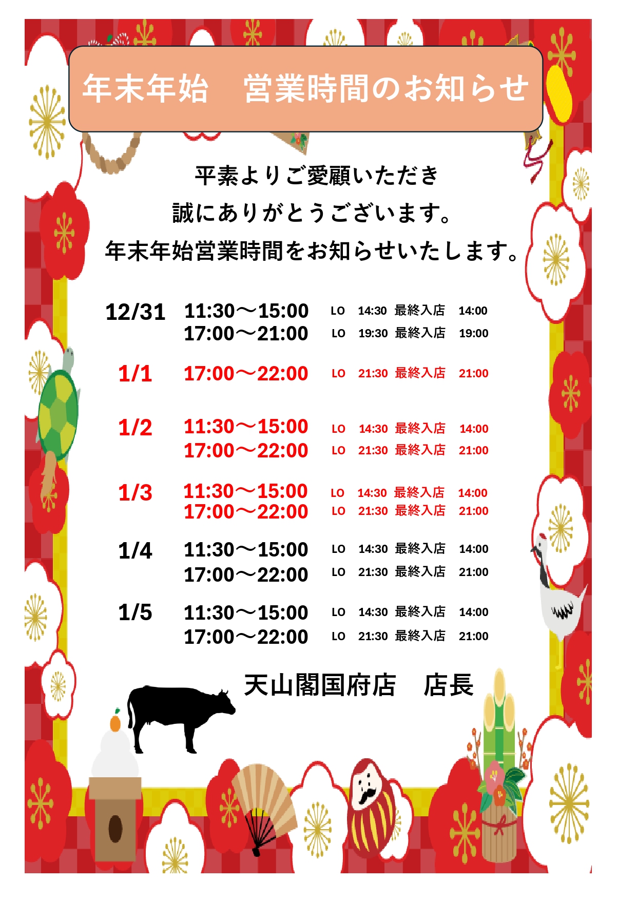 誠に勝手ではございますが、各店下記日程は臨時休業とさせていただきます。